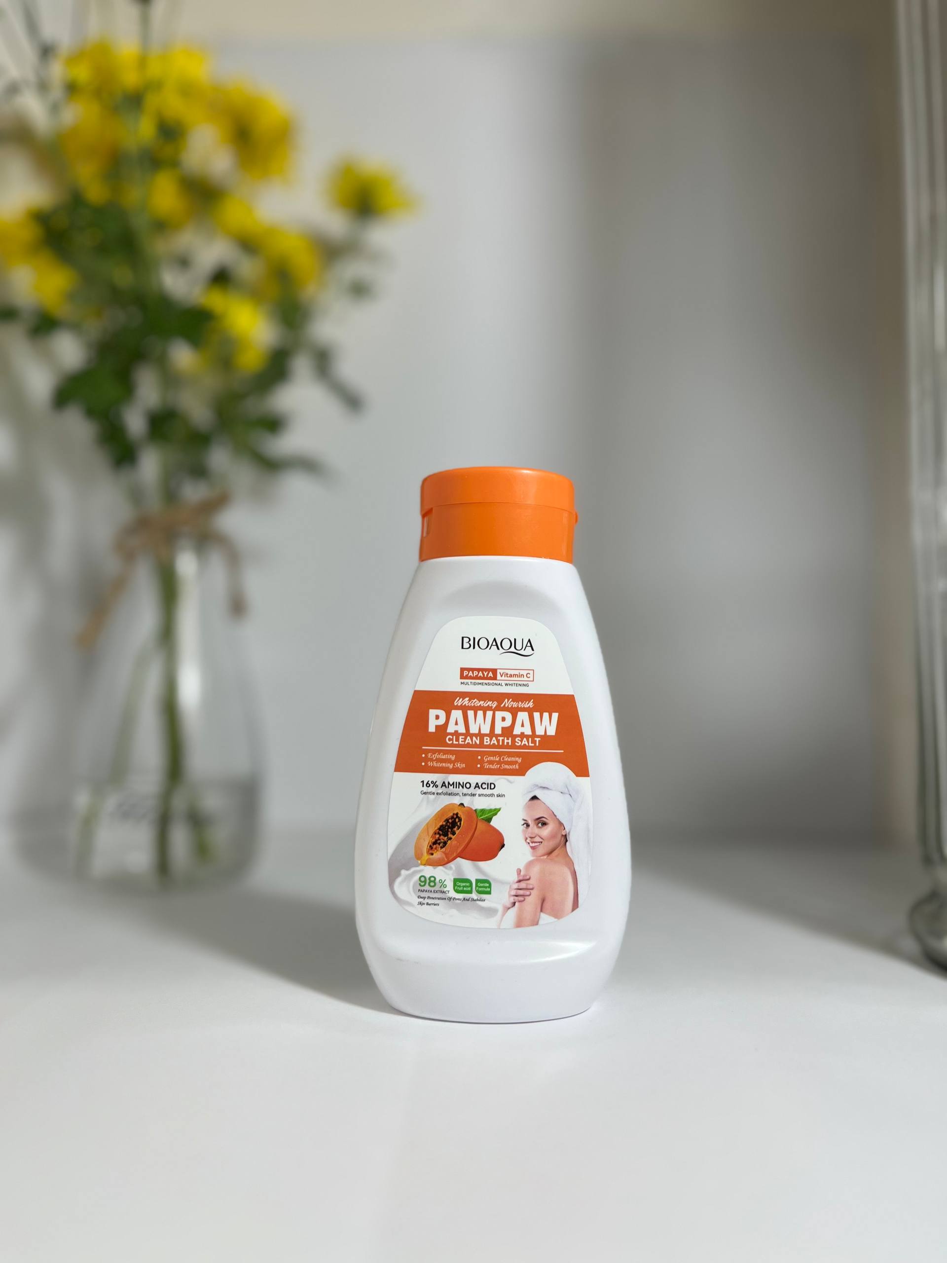 نمک حمام بیوآکوا مدل پاپایا حجم 250 میلیلیتر | روشنکننده و شادابکننده پوست